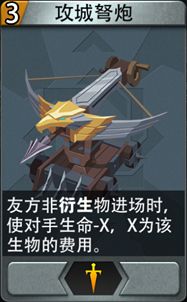 原效果:你的回合内,友方生物进场时,使对手生命-X,X为该生物的费用。