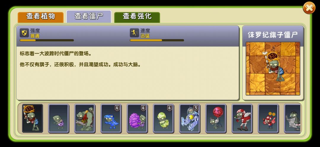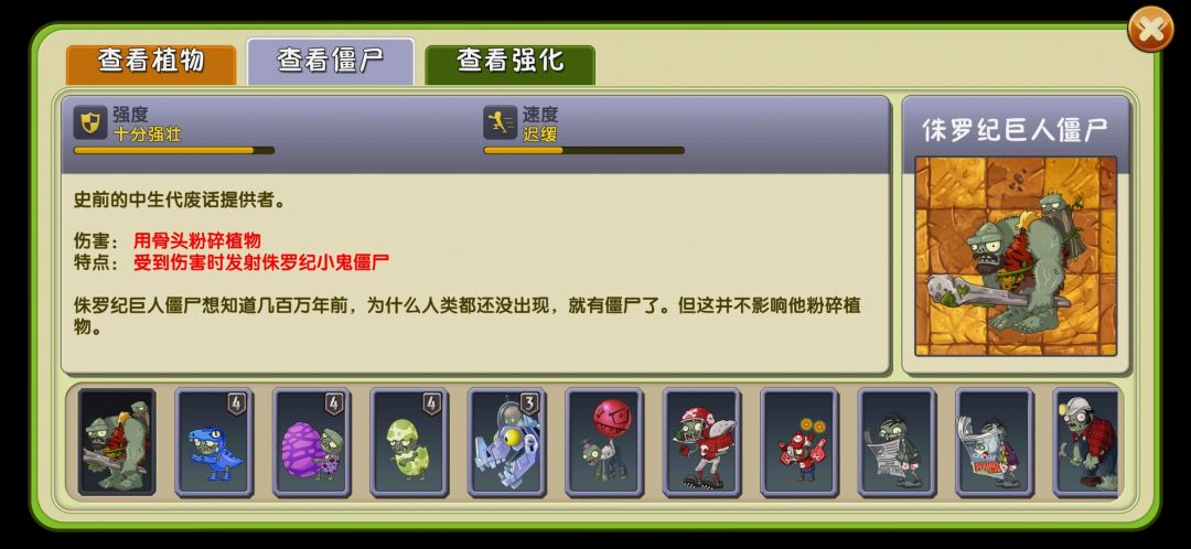 霸王龙,在入场后,若在30秒内本行有僵尸进入场内,它将咆哮一声,为本行僵尸提供400%的移动速度加成并强行向左移动。这些僵尸受到减速效果后,状态会消失。在咆哮过后,它会立刻离开。约30秒后,即使并未触发咆哮,它也将离开。僵尸接触到植物后,加成消失。