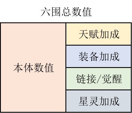其中,天赋、装备、觉醒、链接、星灵都为固定数值加成,并直接加于本体数值之上,与本体数值分别独立计算