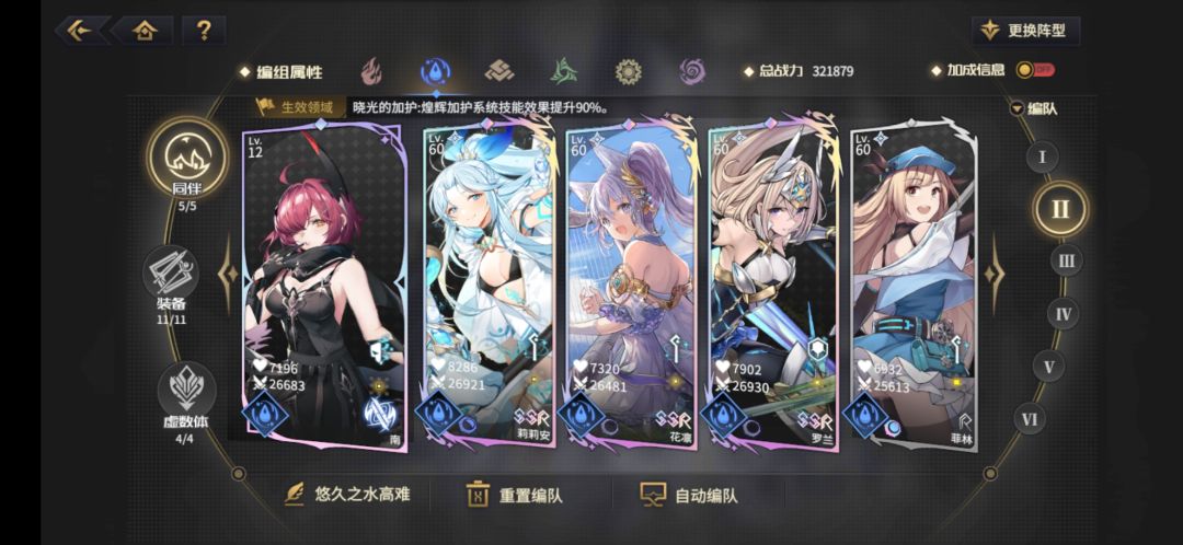 光的话标准阵容,进场之后手动放个伐楼拿,伐楼拿第一自动,暗机第二自动,克洛第三自动,建御雷自己手动清下buff,很好过。也可以上花凛,开场自带免疫,不过得点基能