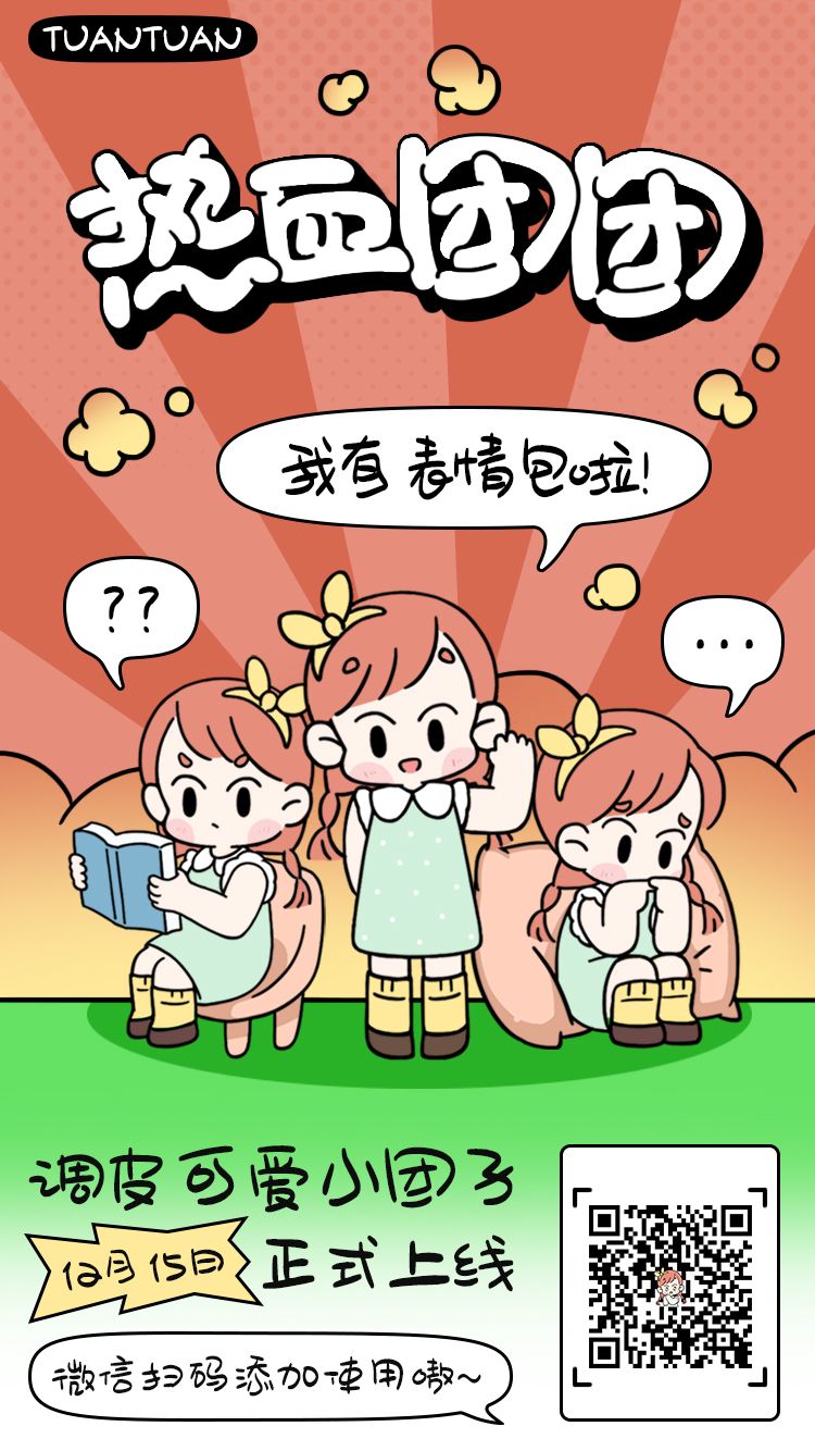 【扫描海报二维码】或是【微信表情包搜索】<热血团团>即可添加使用!