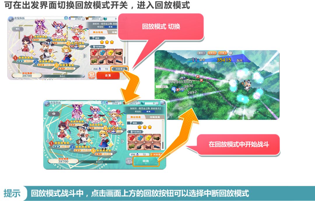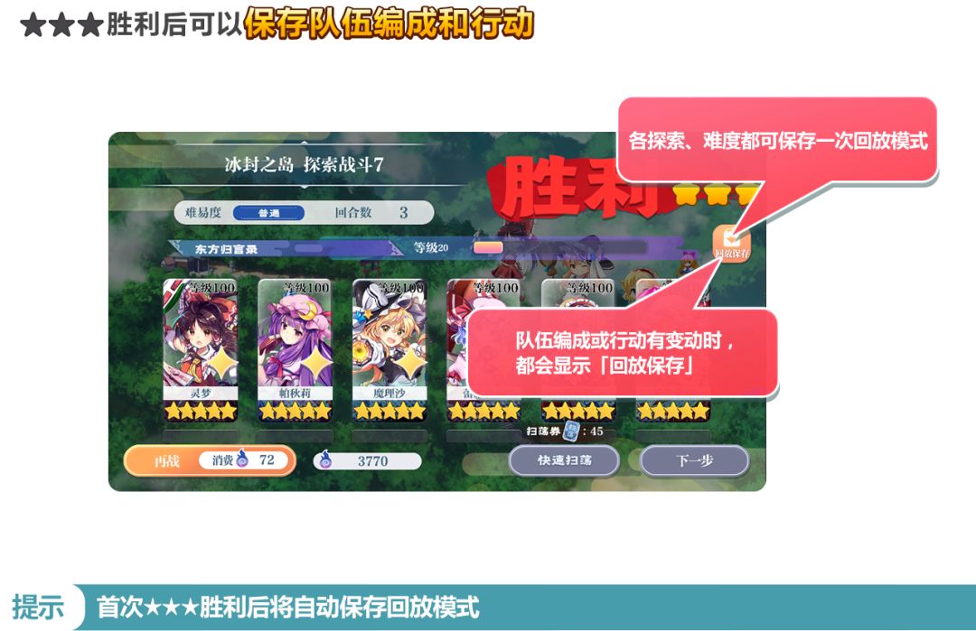 ※由于「回放模式」为新实装功能,原来已经★★★通关的关卡,需要再次达成★★★通关并保存行动后方可使用回放模式再战。