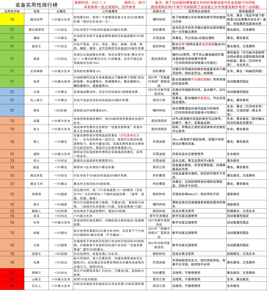 关于最常用的四套装备:①幽灵(最优先,至少需要五个5金项链,词条无所谓,开到就是赚到)②魔化赫萝,最好暴击词条,优先开戒子。③菇妖王,最好暴击词条,优先开戒子。④勇者套,jjc商店常驻套装,有币就能换。