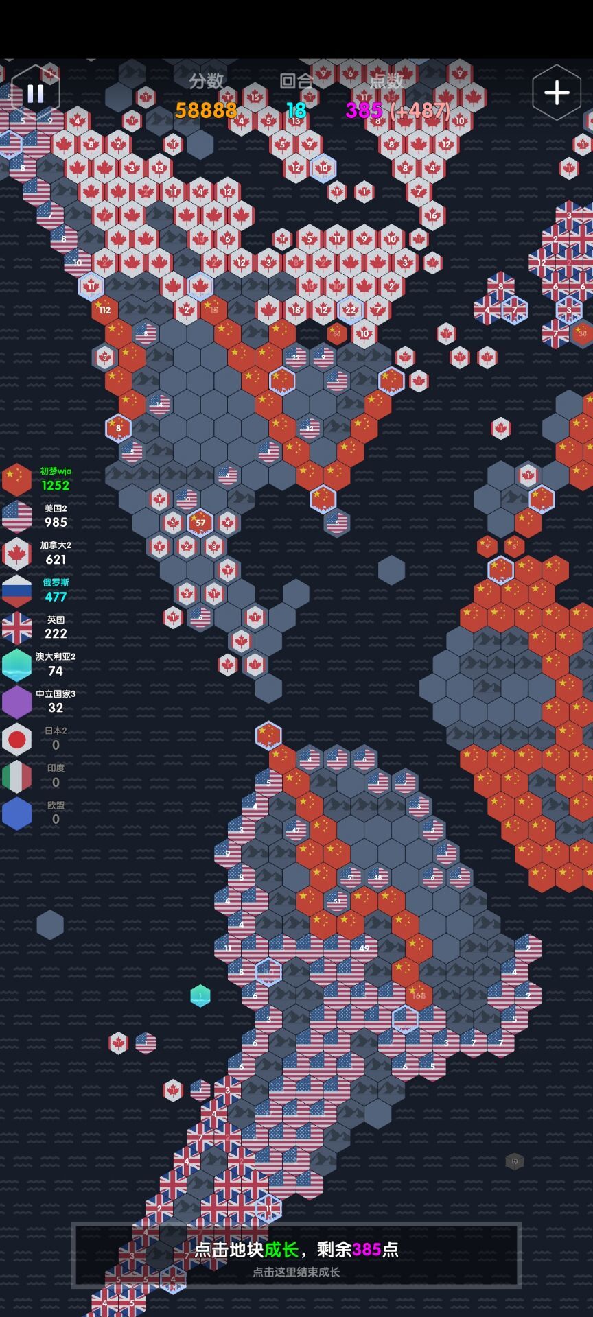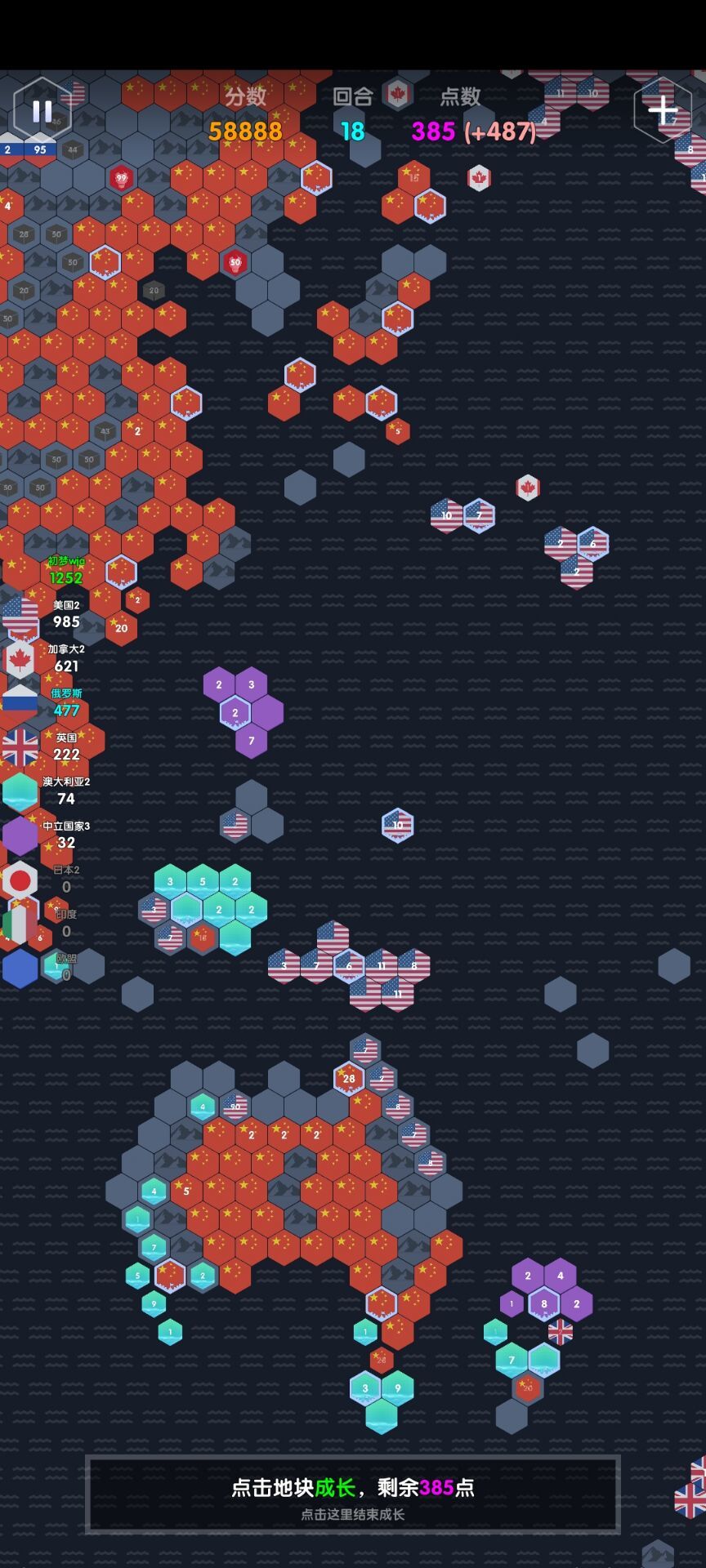注:开局容易崩盘,需注意第一回合尽可能扩张最大地形,否则第二回合容易崩盘