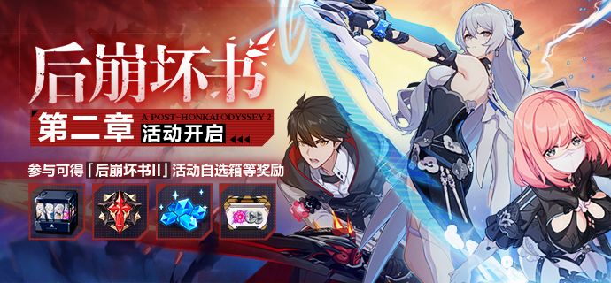 「后崩坏书」第二章即将开启,舰长无需通关「后崩坏书」第一章,即可抢先体验第二章的内容~参与限时活动即可获取「后崩坏书II」活动自选箱,打开后可选择「次生银翼」推荐圣痕套装「真理之翼」中的任意一件或材料箱奖励!