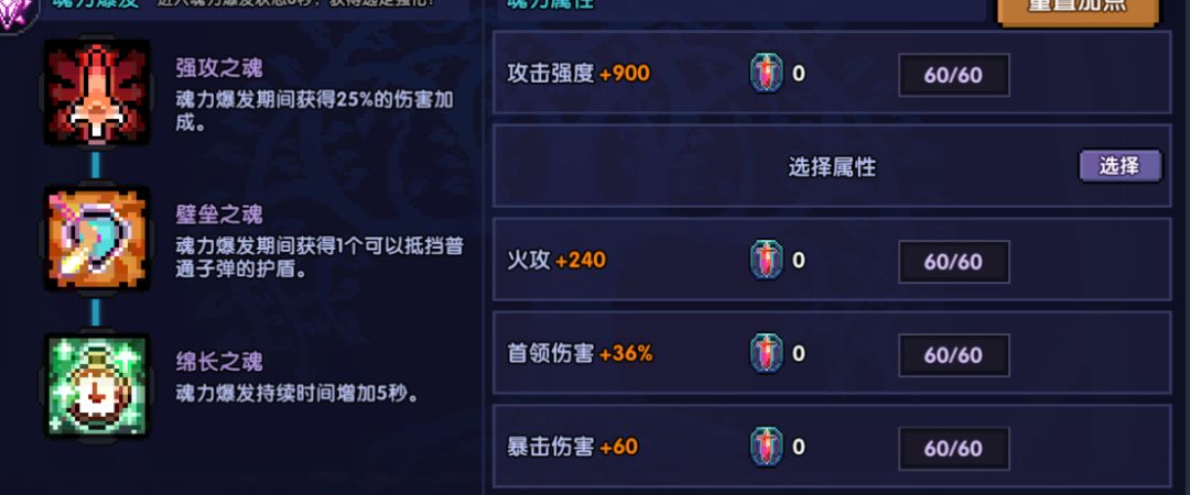 魂力爆发选择强攻之魂,因为不吃技伤,而元素伤稀释太大,故而
