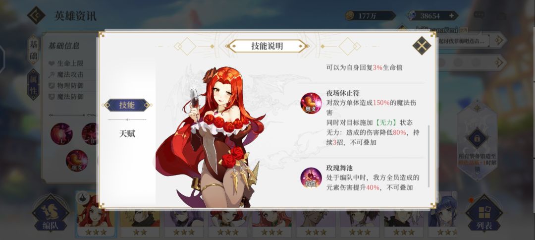 完全不参加,也不会造成任何一种状态,属边缘人物,因此强度堪忧。但是高额减伤(降低敌方对我方伤害)和加血机制满足元素队大将位生存需要,以及官方送觉醒,所以拿来进行过渡也是十分不错的选择。