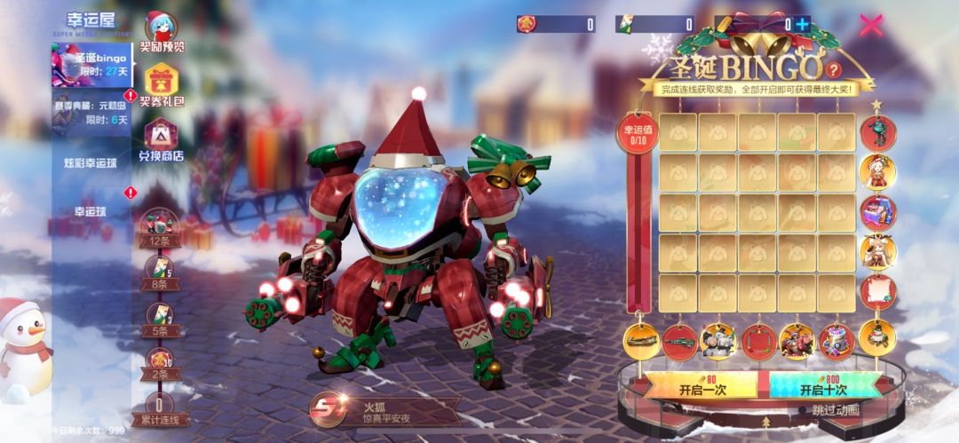 火狐S+级外观“惊喜平安夜”,乔安娜S级外观“圣诞派对”,米拉S级外观“雪地小驯鹿”,厄运光束S级外观“圣地巡游者”,焦糖重炮S级外观“雪人奇妙夜”及众多全新圣诞专属武器载具外观上线圣诞Bingo奖池! 奖池开启后,玩家前三日登陆游戏可在奖券礼包活动界面领取圣诞幸运礼券奖励!