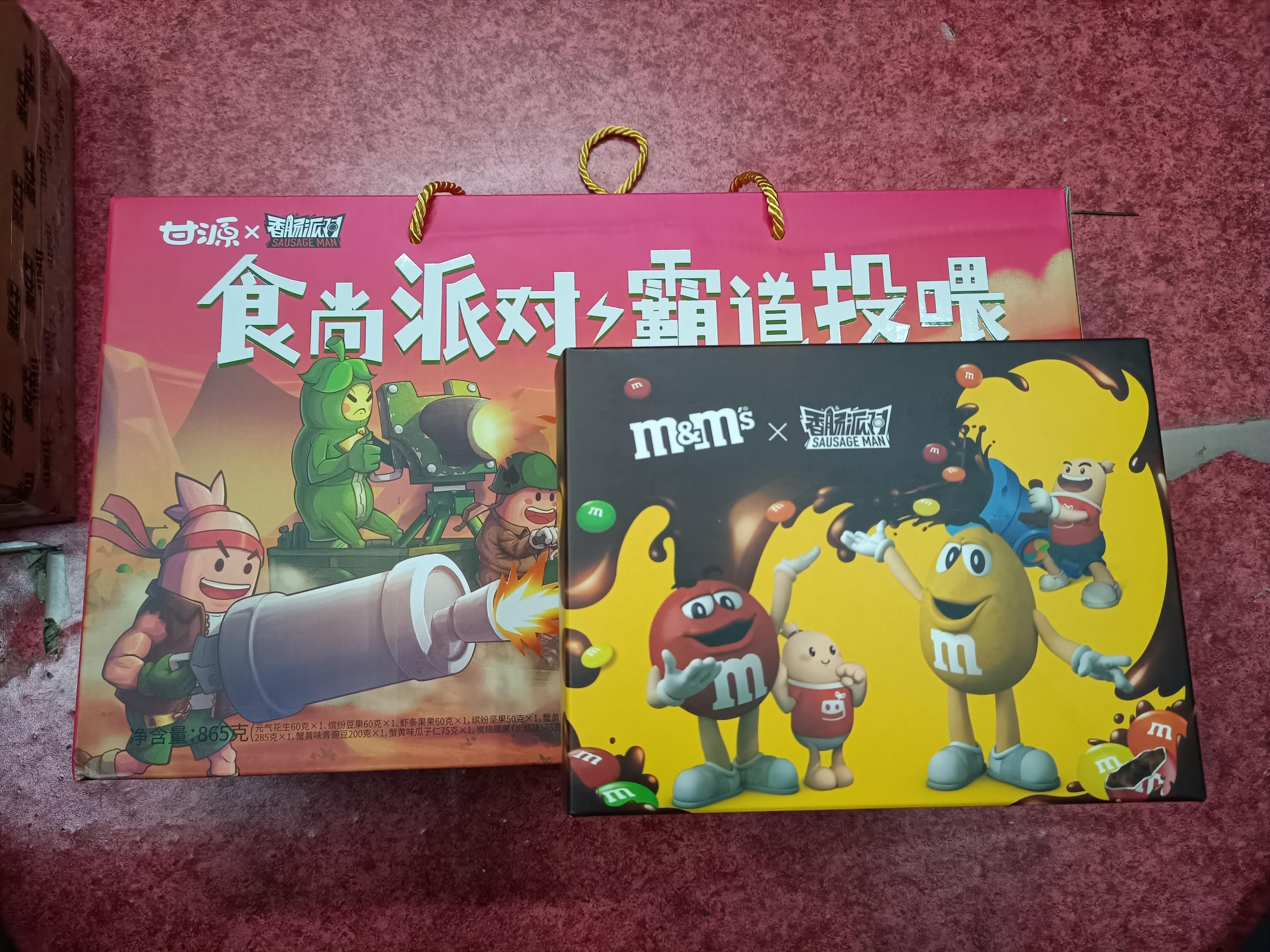 双12把香肠派对最近的联动集齐了😻甘源和m豆包装盒子跟量差别好大,联动的皮肤有一说一也是蛮。。。的,算是支持联动叭,不过皮肤能再做的用心点吗🙄🙄🙄