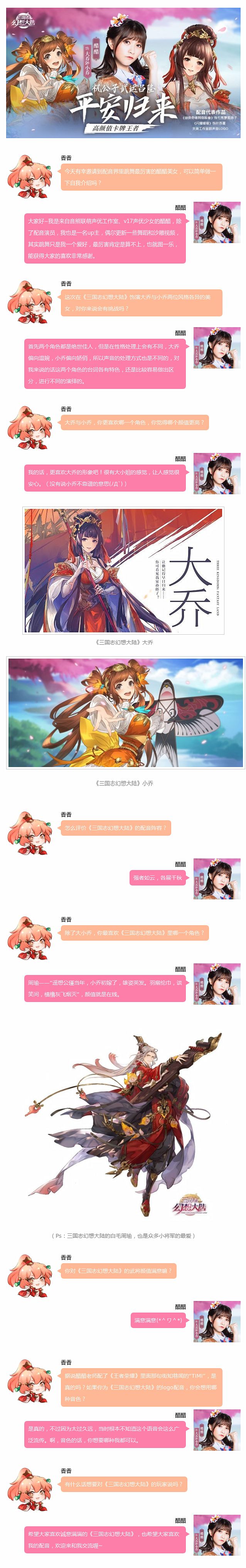 美少女CV醋醋倾情献声《三国志幻想大陆》,作为江东双姝大乔与小乔的声音扮演者,醋醋老师是如何沉浸在这个高颜值三国世界,用心演绎大小乔的呢?还是让她亲自告诉你吧~