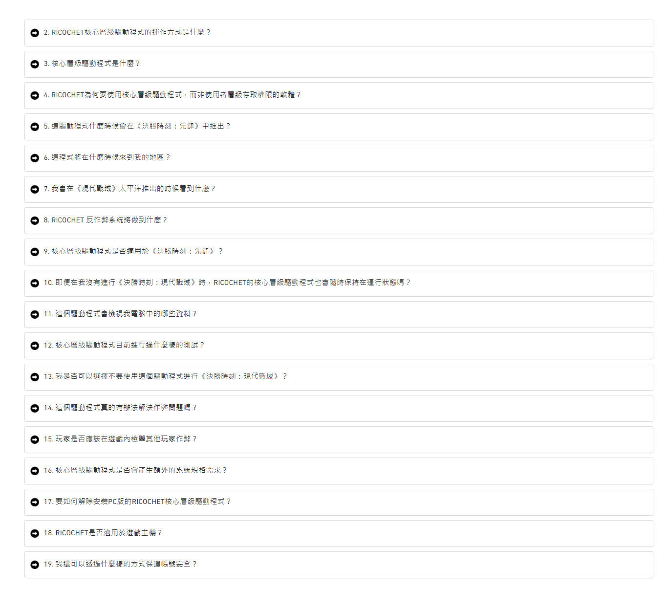 RICOCHET反作弊系统的后台安全功能已在《使命召唤:先锋》及《使命召唤:战区》中推出。随着《使命召唤:战区》太平洋推出,这专门为《使命召唤》系列而设计的PC核心层级驱动程式也将一同面世。这驱动程式将率先为亚太区的《战区》玩家推出,然后再于世界其他地区中推出。