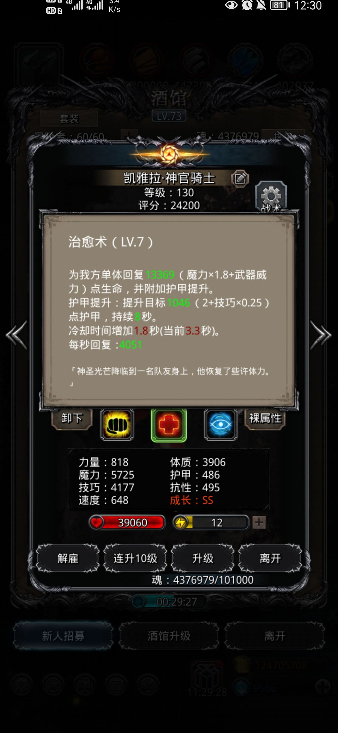 战术:神官只开100%奶队友,不自奶。钱半分钟手动奶巫医,看情况奶圣龙。后面挂机。