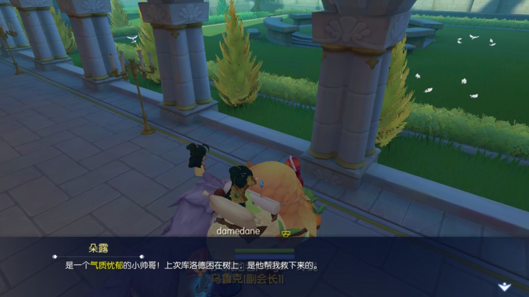 4、与【朵露】小姐对话,会让你帮她送东西给一位【忧郁】的男子