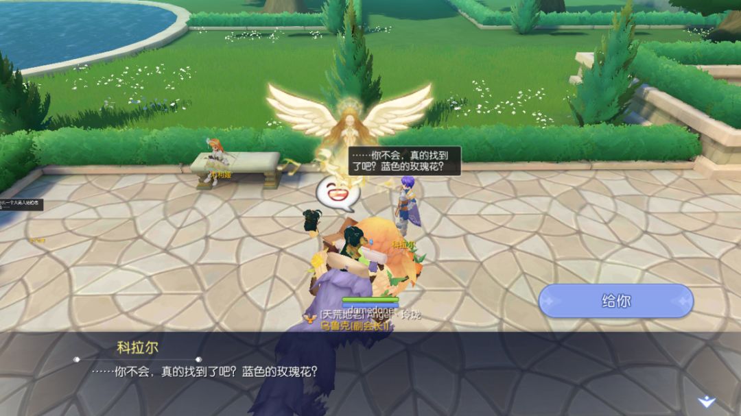 2、在花园的角落里找到一对热恋的情侣,然后捣乱他们约会2次,骑士为了哄好女生需求【蓝色的玫瑰】