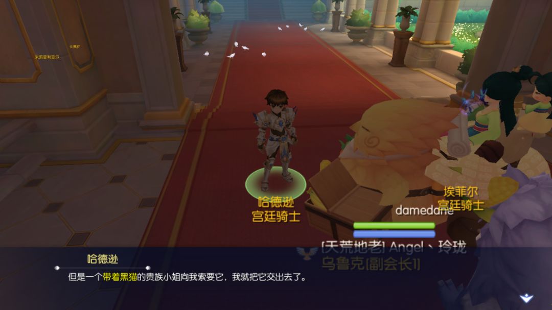 3、茜茜会提示自己的珍珠被一位【冰冷冷的骑士】拿走了,来到玫瑰剧院前多次搭话【哈德逊】,会被赶走,再次回来和【哈德逊】对话,提示珍珠在【和黑猫玩的大小姐手上】