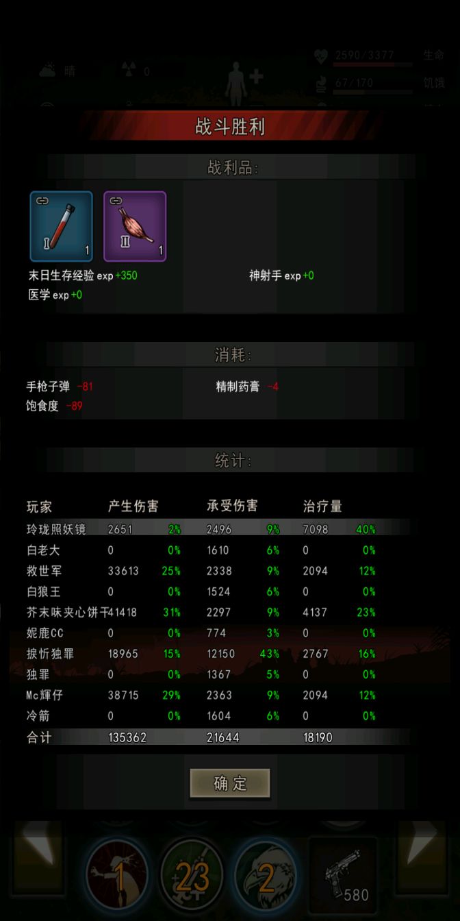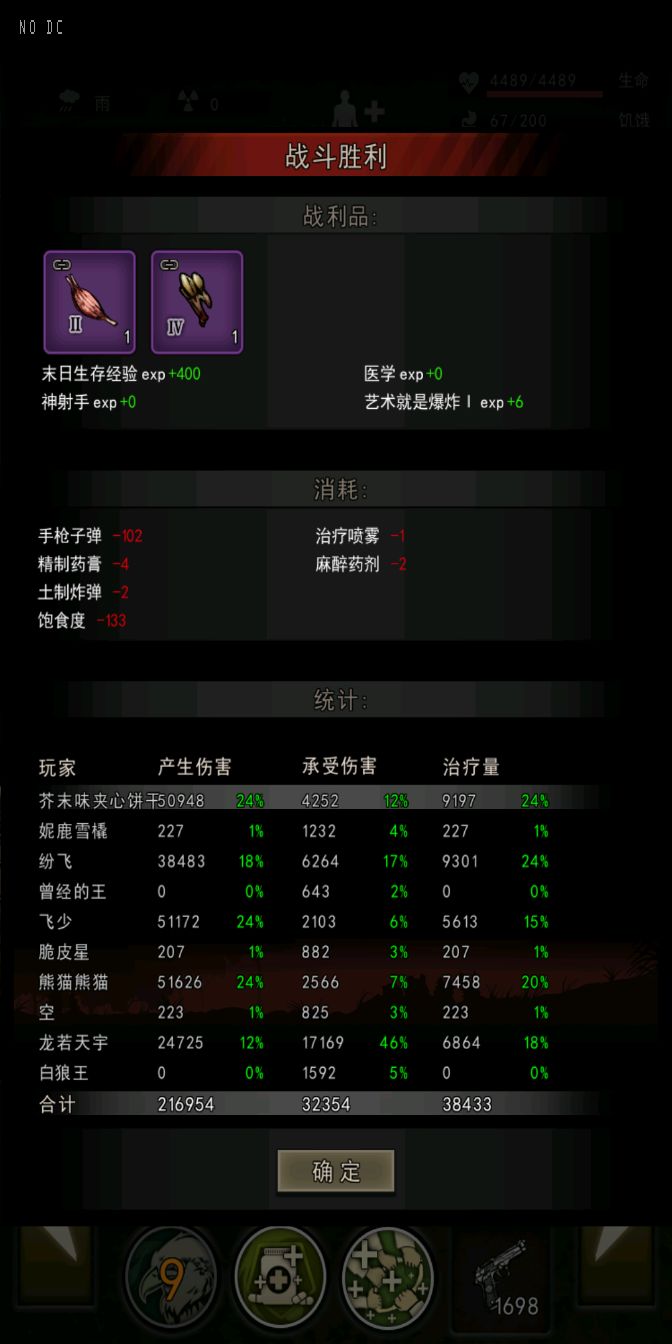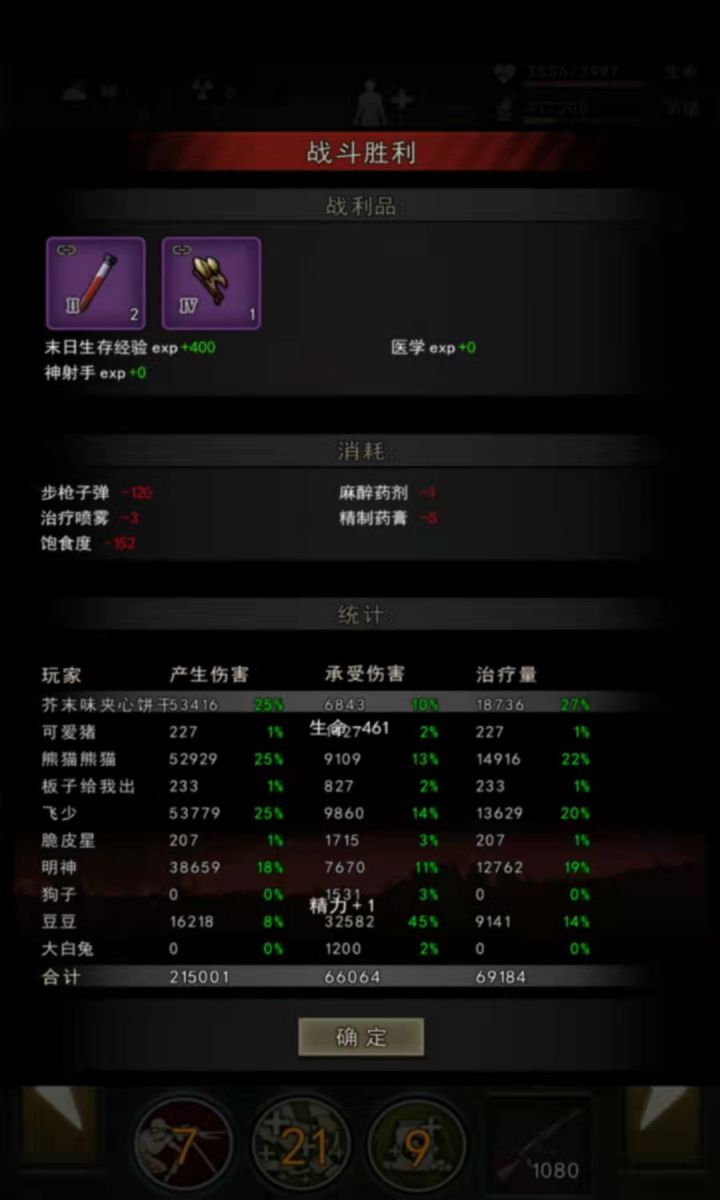 罗列几张之前打污染和女王的截图,芥末味夹心饼干是手枪🔫,熊猫为同配置步枪,辉仔助战高一级,配件低我一级,也可看为是同配置。(图1和图7为步枪全程架枪一步没动)