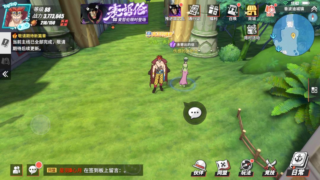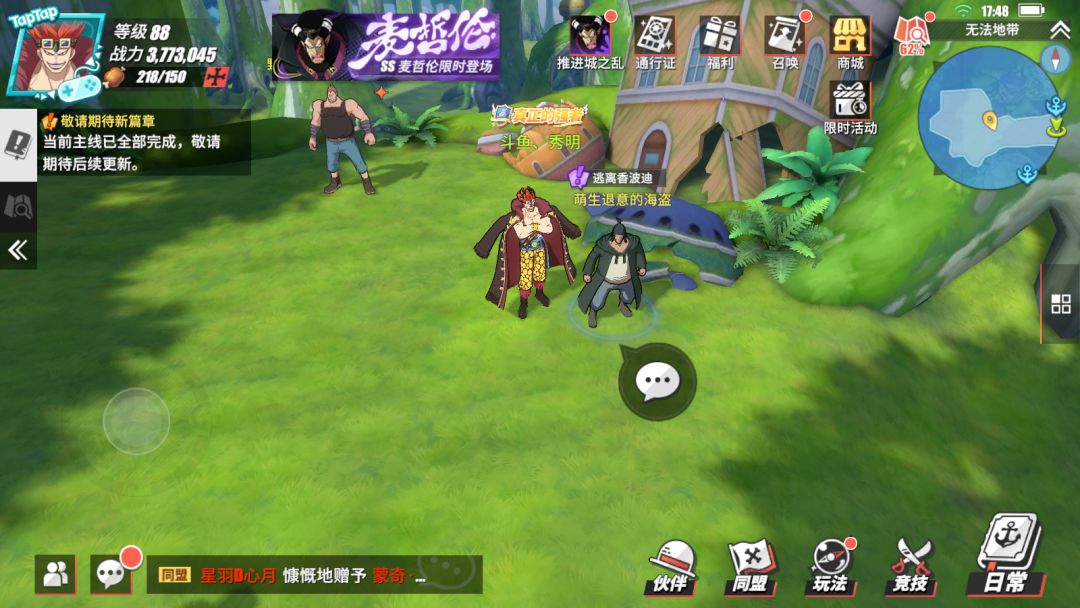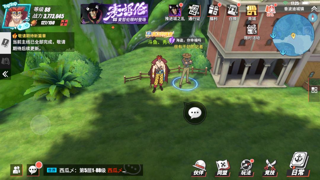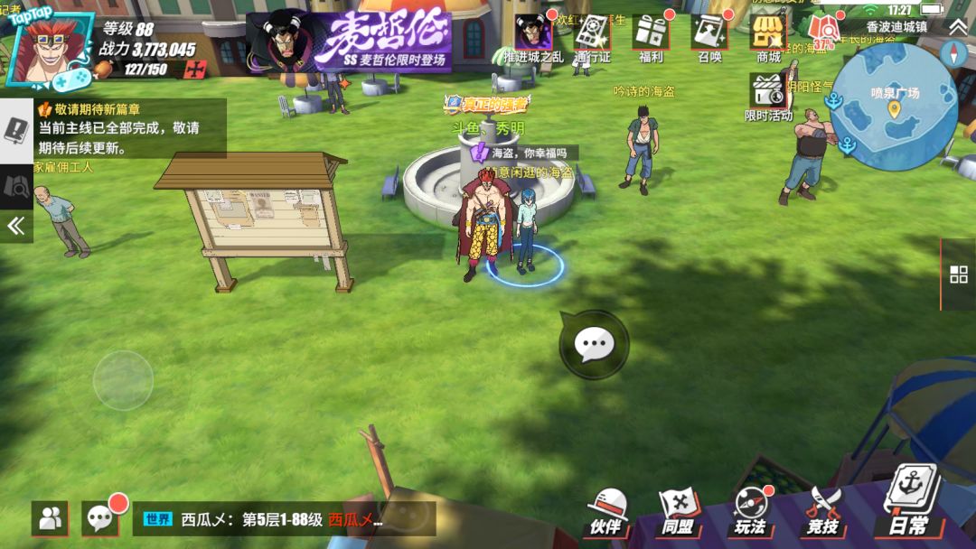 4.来到香波迪城镇的商店街下方,与年轻的海盗谈话,可以得到5万贝里。