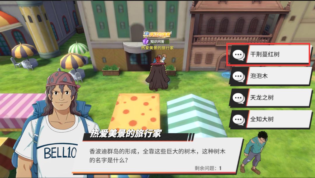 6.来到香波迪城镇喷泉广场右侧,与阴阳怪气的海盗谈话,可以得到10金果。