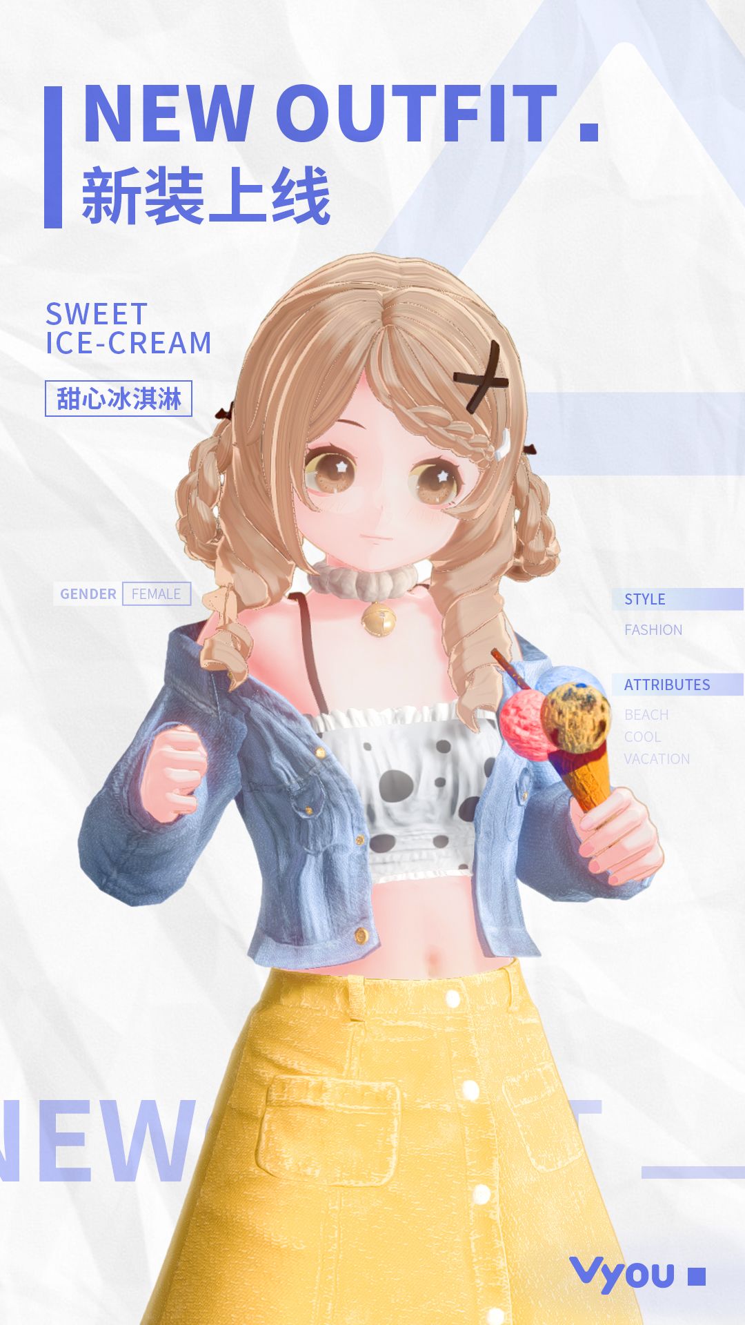 ✨ Vyou内测期的签到服装“甜心冰激凌”以及两个经典造型的瞳孔迎来复刻啦,想收齐吗?就在本周!