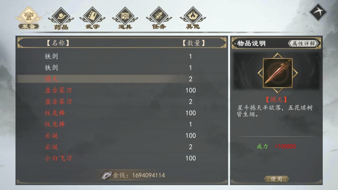 首先,先在游戏购买物品,就以玄铁为例。购买玄铁后,然后存档