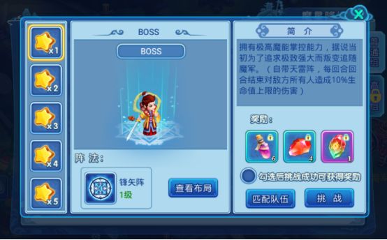活动分为普通组与高级组,挑战普通组魔星要求角色等级达到75级或以上,而高级组则需要角色等级达到130级或以上。每个魔星共有10星难度,星级越多难度越高同时奖励也会越丰富。水粉们可以根据队伍实力选择星级难度挑战,根据BOSS的阵法与布局合理利用阵法的克制效果,将会提升队伍整体的实力,能更加容易挑战BOSS成功!