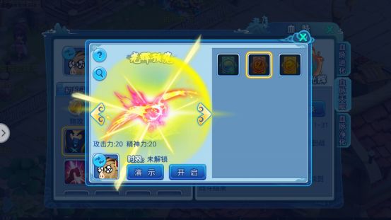 在 血脉天赋 右上角可以看到 血脉光辉 按钮,不同的光辉拥有不同的加成(光辉只要解锁不论是否佩戴孩子与召唤兽都能享受到该光辉的全部属性加成),而为召唤兽/孩子佩戴光辉后该召唤兽/孩子会增加进场特效(每种光辉最多只能在两只召唤兽/孩子身上开启)