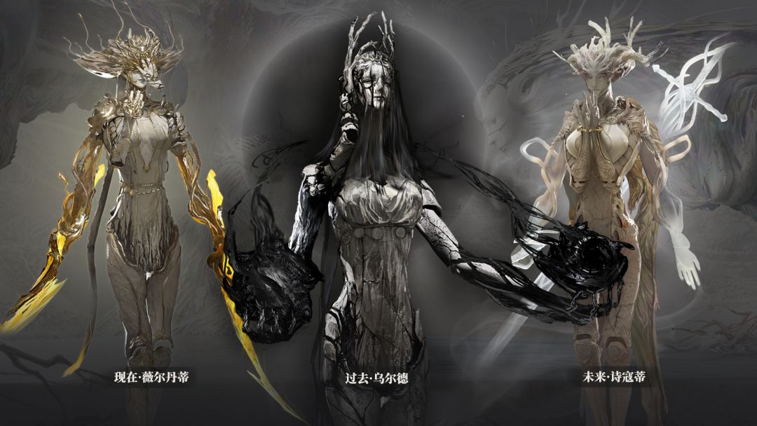 她们三人皆是由命运之“母”所分化的女神。自诞生后便获得了不同的“门”与特殊的使命。乌尔德能踏足“过去”的时间,诗寇蒂前往“未来”的时间,而薇尔丹蒂负责维系的是“现在”的时间。