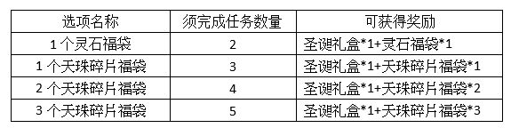 A:四个选项各自会需要完成不同数量的任务才能领到对应的奖励,若没有完成指定的任务数量,还是会收到基本奖励【圣诞礼盒】。