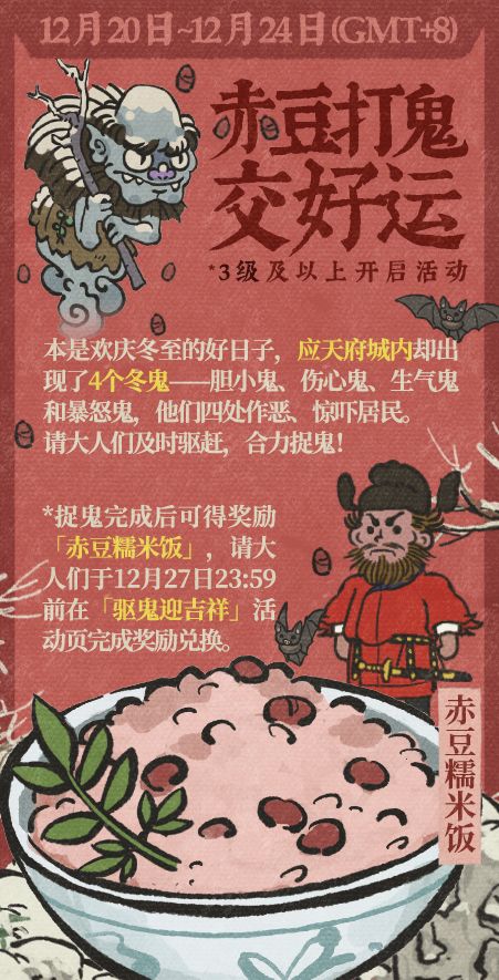 奖励兑换截至12月27日23:59,请及时前往游戏内【驱鬼迎吉祥】页面兑换奖励。