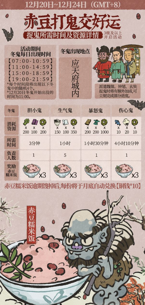 冬至临近,应天府内出现4只冬鬼四处作恶,还请知府大人及时驱赶,以防它们祸乱百姓。