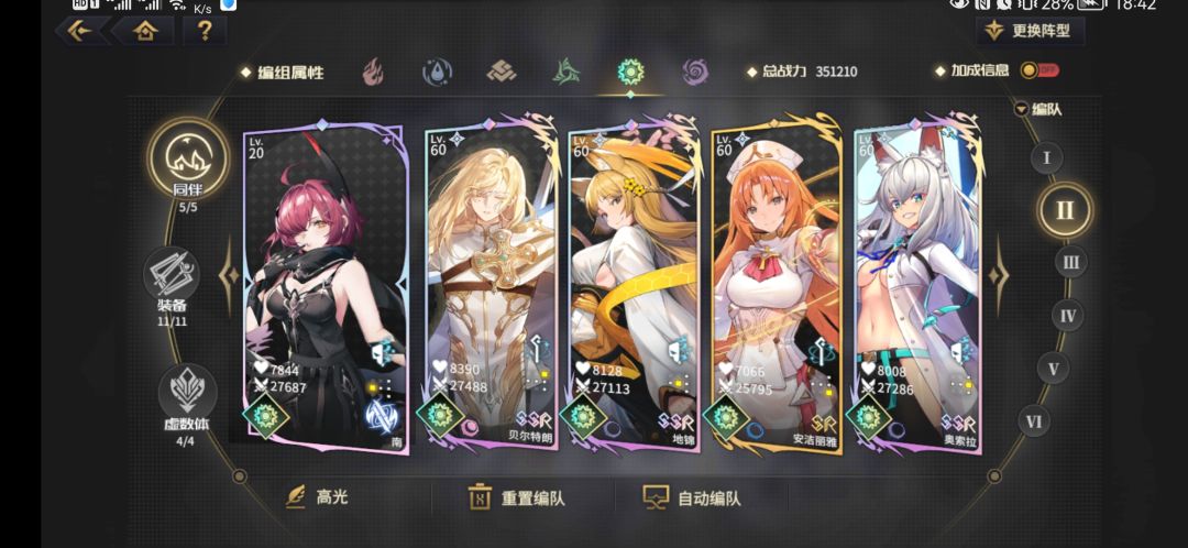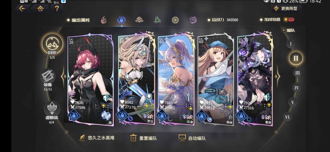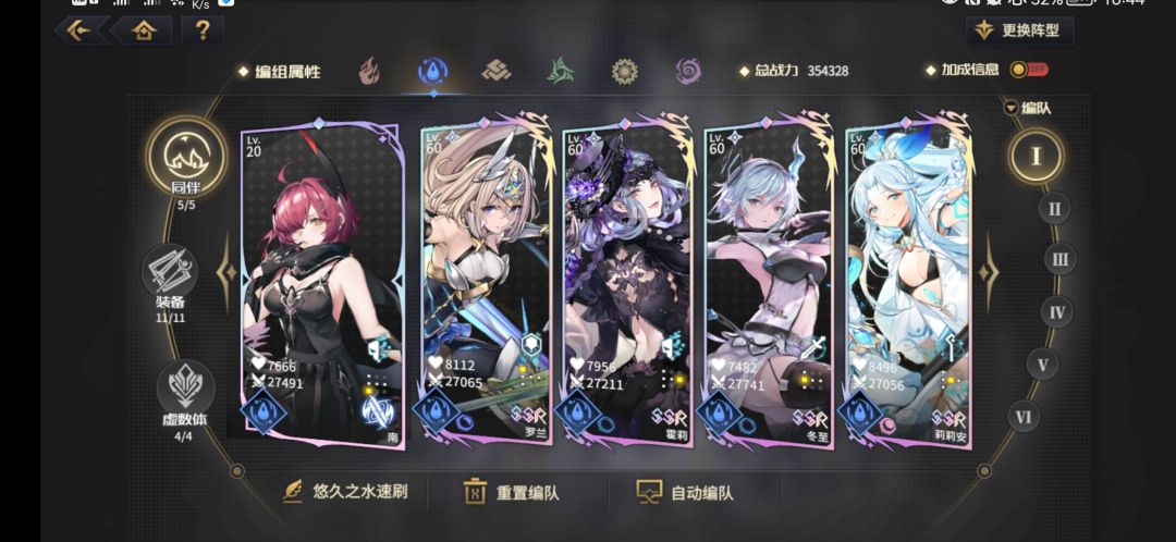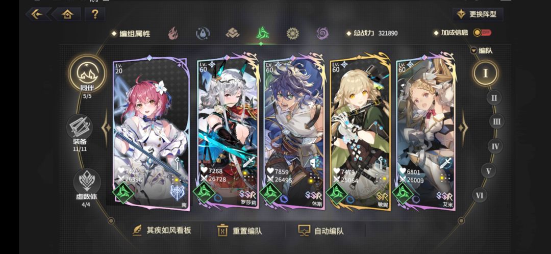 大家可以看到我上面发的自己的阵容截图,每个属性我基本都分了两队(风还没练好除外)。一队是自己平时速刷用的,还有一队是高难本用的。如果你不是那种氪穿了的顶配老王盘玩家,我还是建议你和我一样给每个属性编两个队。