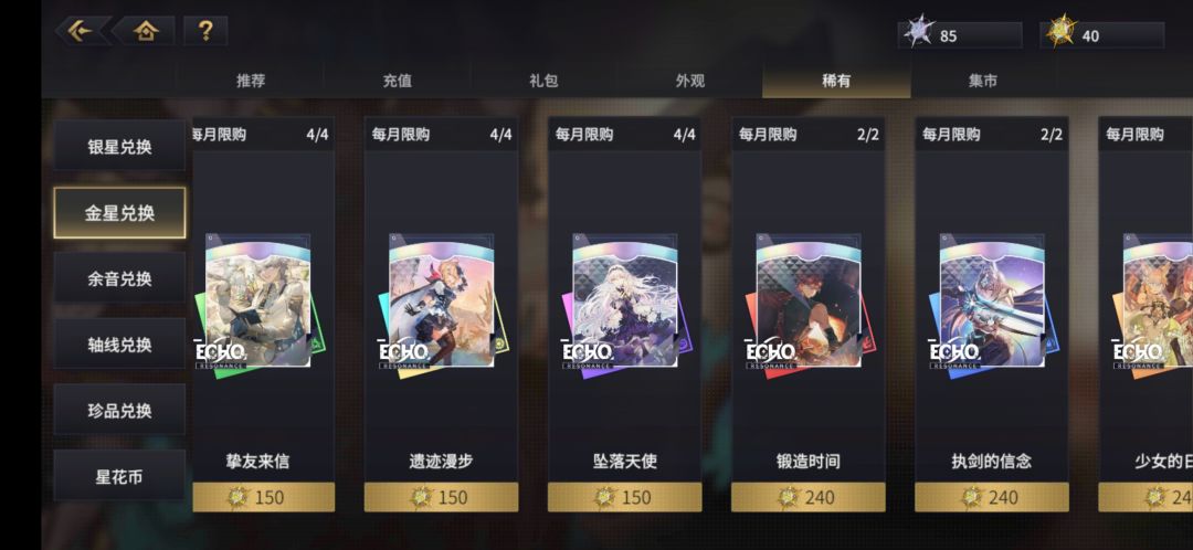 这个可以在商店金星兑换那里看到,顾名思义需要150金星兑换的为150,240金星为240。目前所有的150回响都能在回响池中捞出来,但240只有金星兑换这一条途径。lm为limit,即限定回响,可在奏鸣币商店兑换的都是lm,奏鸣币可通过抽取lm限定卡池获得。