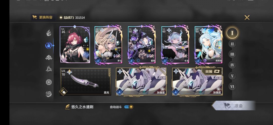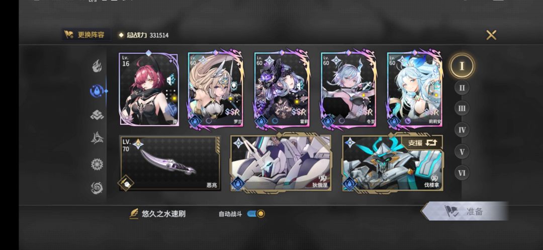这个游戏的养成难度主要体现在装备的养成和角色基能上,把一个角色养到60级基本没有任何负担。所以除了部分极其吃基能的角色,很容易一个属性凑出好几套阵容。