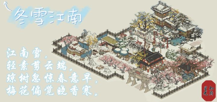 屋外飞雪漫天,文人墨客们在廊内温一壶老酒,摆好棋盘,等待着老友的到来;