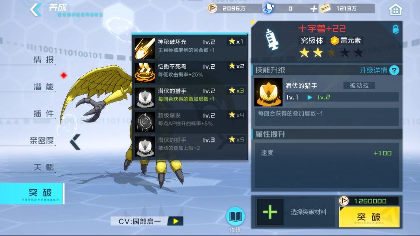 推荐阵容:十字兽(2100速度以上)+输出型数码宝贝
