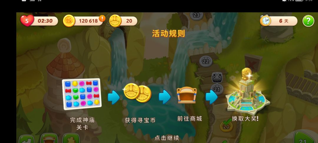完成神庙关卡获得寻宝币,然后去商城用寻宝币换奖励!注意:一天只更新5关,合理安排好自己的时间。
