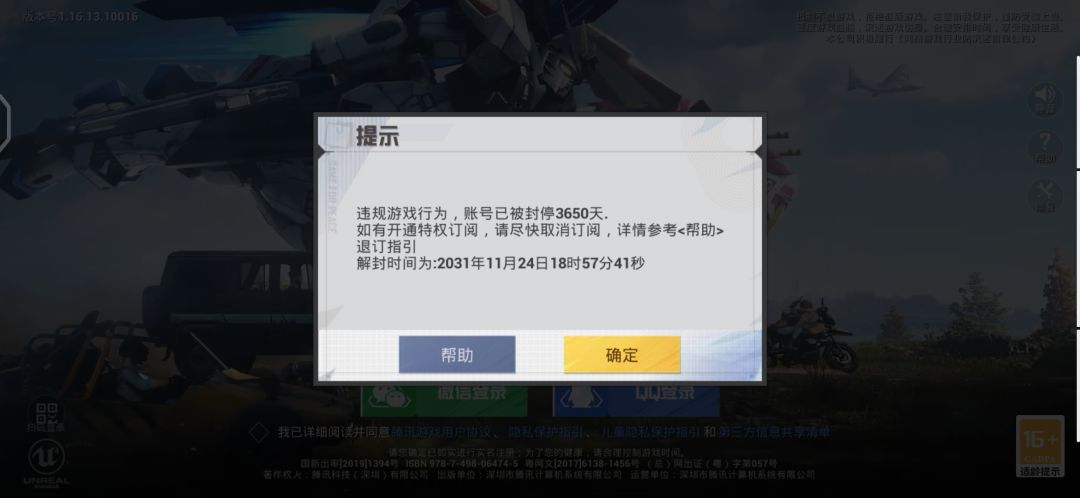首先,我没有进行账号外借,租赁,账号一直都在我自己手里,我也没有开外挂,也没有修改游戏画质和帧数,更没有使用过第三方软件。我从2020年2月份接触了这款游戏,我玩了两年,也暂时是个中级巡查员,10个王牌印记,我在11月26日4点左右进行了我最后一把游戏,打完那把游戏我就去吃饭了,然后我也就没有上线过,等到我晚上10点左右我想玩游戏的时候发现账号被封禁10年,我一头雾水。直到我登录和平营地,我看见小秘书给我发了一条异地登录信息,是在广州。我本人常用地一直都在吉林和内蒙古自治区。而且我在战绩中发现在我最后一把对局后面又出现了一局对局记录。这局不是我本人打的,我不知道为什么盗号者可以不用登录微信就可以登我的游戏账号。而且我的微信没有收到任何提示,我本人从来没有开挂去破坏别人的游戏环境这种想法。我只想说我也是一名受害者,账号被盗我却一直被蒙在鼓里。直到我登录游戏才知道这种情况发生。我去向客服申诉,客服一口咬定是我修改了游戏数据导致的封号。我已经把我的手机型号。实时ip提供给了客服。我不知道是怎么复查的。作为号主,我的账号被盗是我不愿意发生的,我只想官方给我一个解释,为什么我的账号被盗异地登录没有触发人脸识别。我是已经实名的,为什么账号被盗我没有收到任何提示。完全没有被盗风险提示。就这样我的账号被封了10年,我玩了两年,也充值了很多,我只想我的账号解封。或者说给我一个完美的解释,我也是个受害者。我只想维护我的合法虚拟财产。