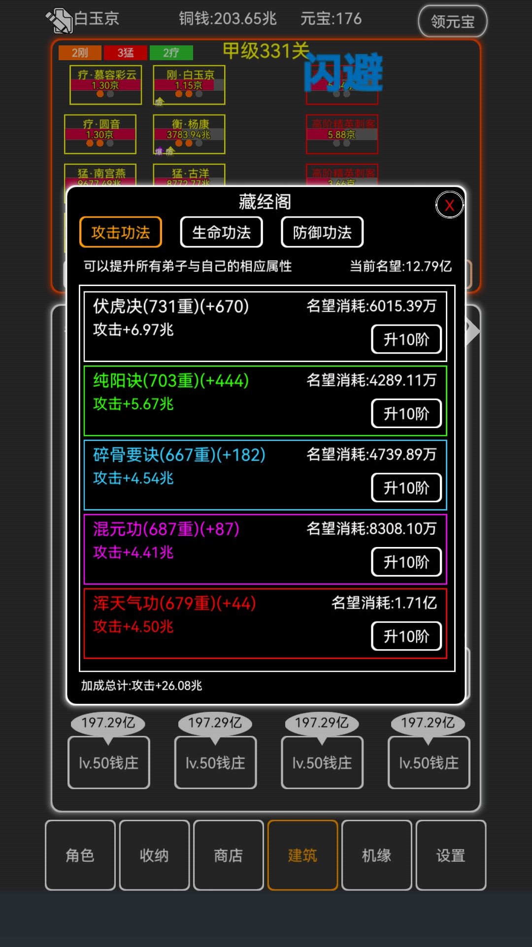 卡到甲级331关了,怎么样能快速提升属性,升级哪个方向提升最快,元宝花完了,武学和阵法短时间没有办法大幅度升级,经书靠看广告的元宝买,每天提升属性一点点,啥时候能通关,求大神指导往哪一方面投资资源提升属性