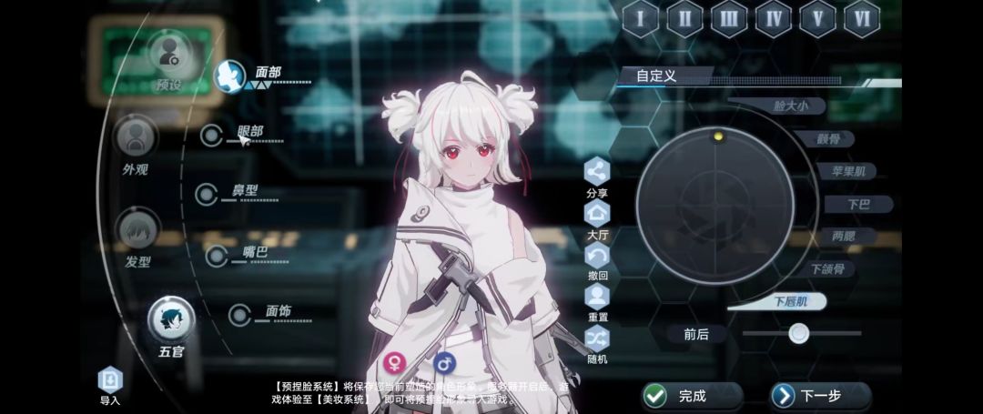 进入游戏后,进入捏脸模块。捏脸模块主要分为“预设” “外观“ “发型” “五官”四个部分,大家可以自动选择,只需要点击“导入”,输入形象ID即可~