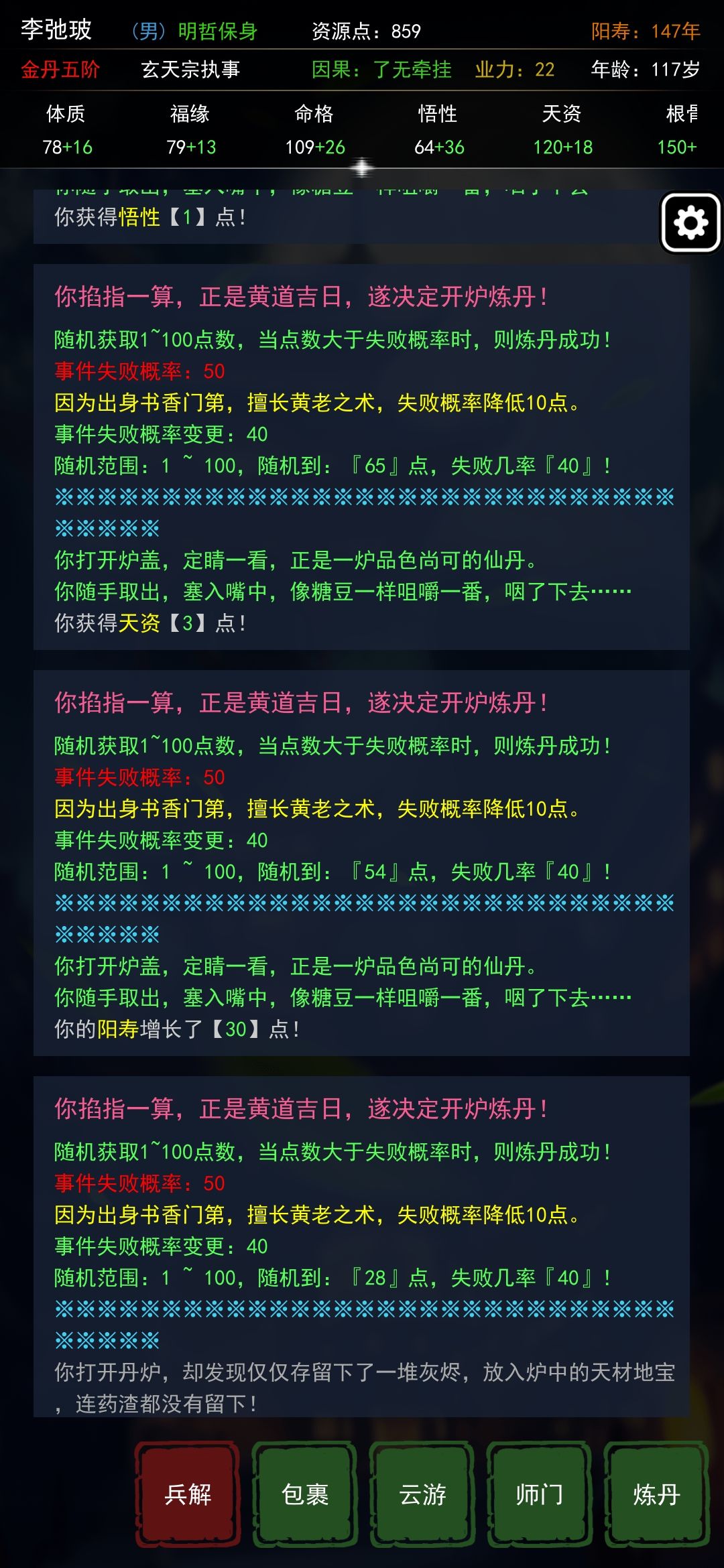 唉,看了半个多小时都不想怎么评论玩了4次了,最高才金丹7