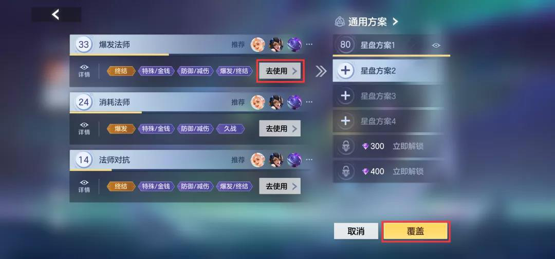 对每个英雄,有多套推荐的星盘方案,玩家可以尝试不同流派的套路