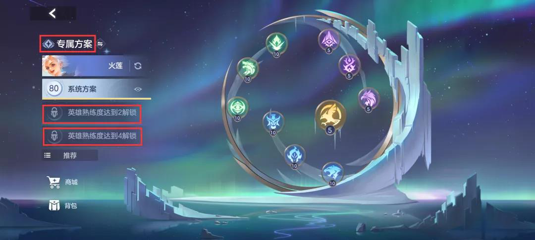 在方案页里新增英雄专属方案,每个英雄有两页,分别在英雄熟练度达到二级和四级时开启,大家可以在这里保存某个英雄专属的独特星盘方案。