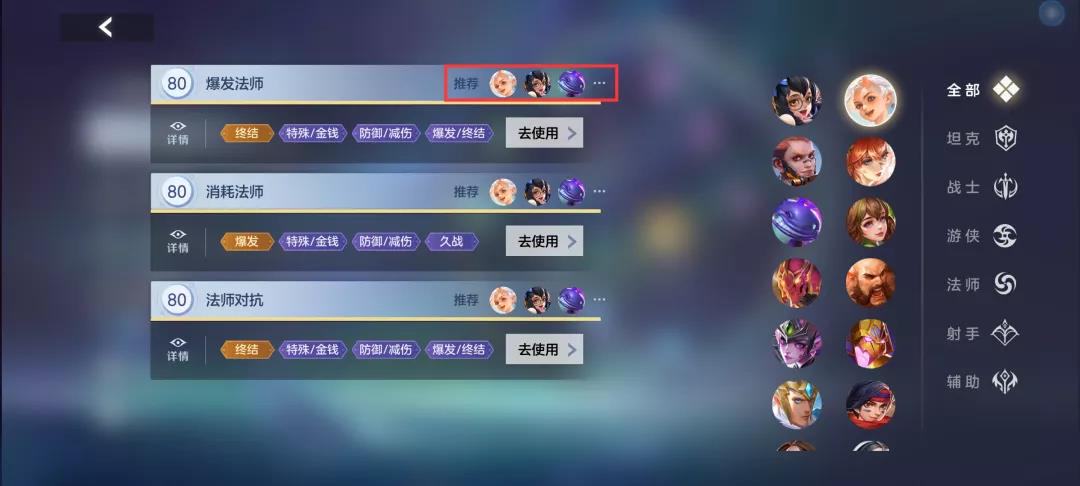 推荐方案上显示本套方案适用的其他英雄,一套方案可以满足多个英雄的需求