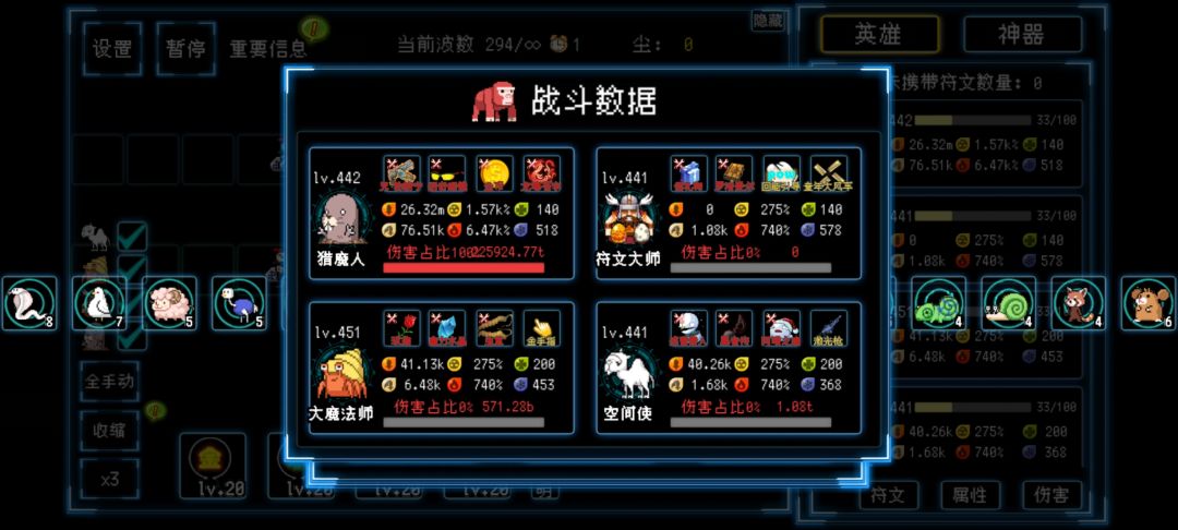 稍微数了一下,大概神器数量在200左右,或许可以考虑把蛋高换成人参更快启动咒·勃朗宁,从而获得更高攻速与攻击。神器选择原则是跟别的普攻套路差不多,就不再赘述了。
