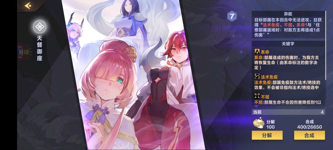 洪荒觉醒和天督御座都是为了保护我们的白幽莲的,尤其是天督御座,如果没有圣火,关键时候可以用它来代替圣火完成斩杀。为什么带洪荒而不带怀朔,很简单,洪荒比怀朔少1费,怀朔月底改了之后,可以完全替代洪荒,现在怀朔真的很鸡肋。。。