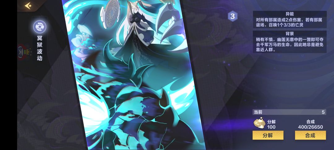 波动,冥土,都是前期抗快攻和打快的关键,让我们避免白幽莲还没上手就被快攻冲爆的局面。小雪,凝月,不光是非常实用的强力部署,也是能迷惑对方,让对方误以为我们是快攻阴,而对我们最后突然冒出个同归于尽疏于防范。