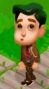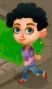 有着杏色的皮肤、深棕色的头发和棕色的眼睛。他身穿红袖红领白T恤,绿色工装短裤,白袜带红线,浅黄色运动鞋,红色鞋底,红色零件,白色鞋带。