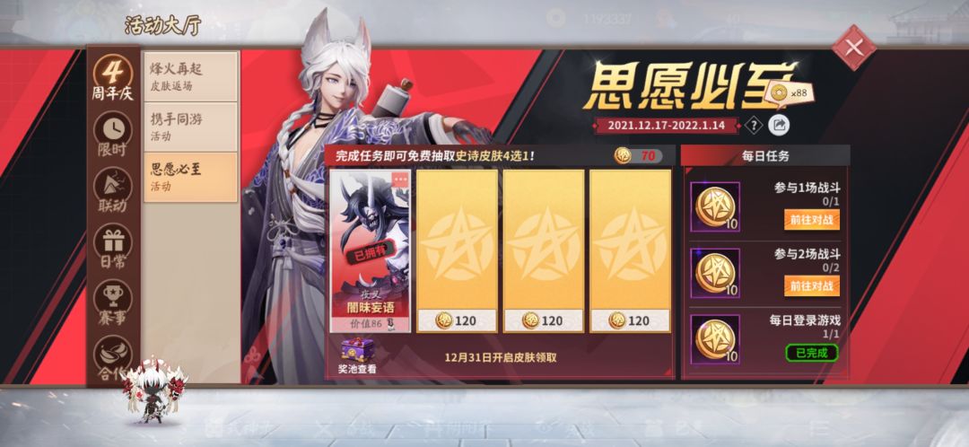 刚刚抱着抽到其他史诗来压缩活动池子的想法去抽了下达摩,然后抽到了夜叉