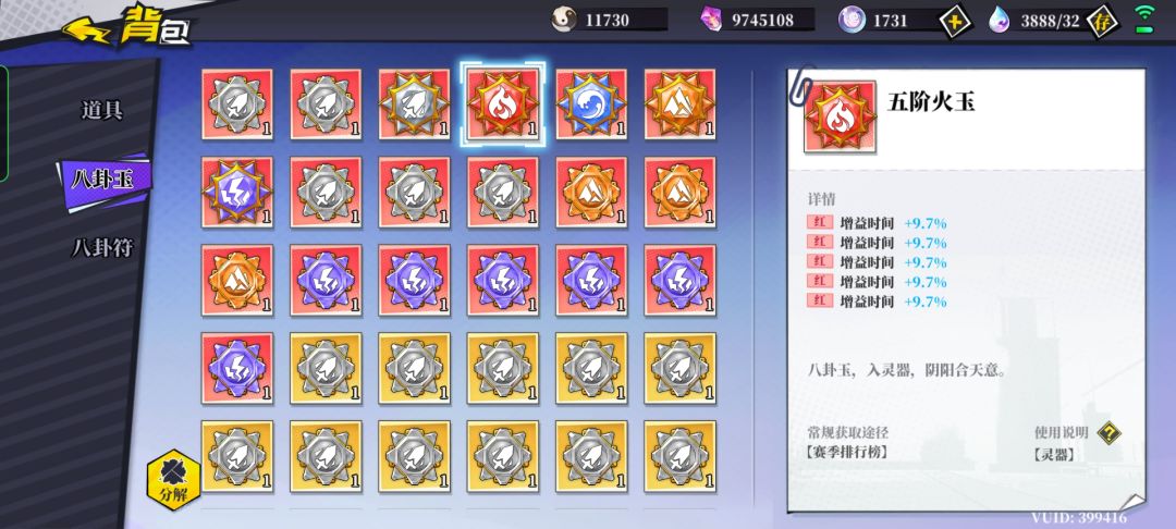 冷却:这里特意说明一下,做一个冷却玉,受益的是全技能。如一个5条6.5%的冷却玉,全技能减冷却32.5%!跟符的作用是不一样的
