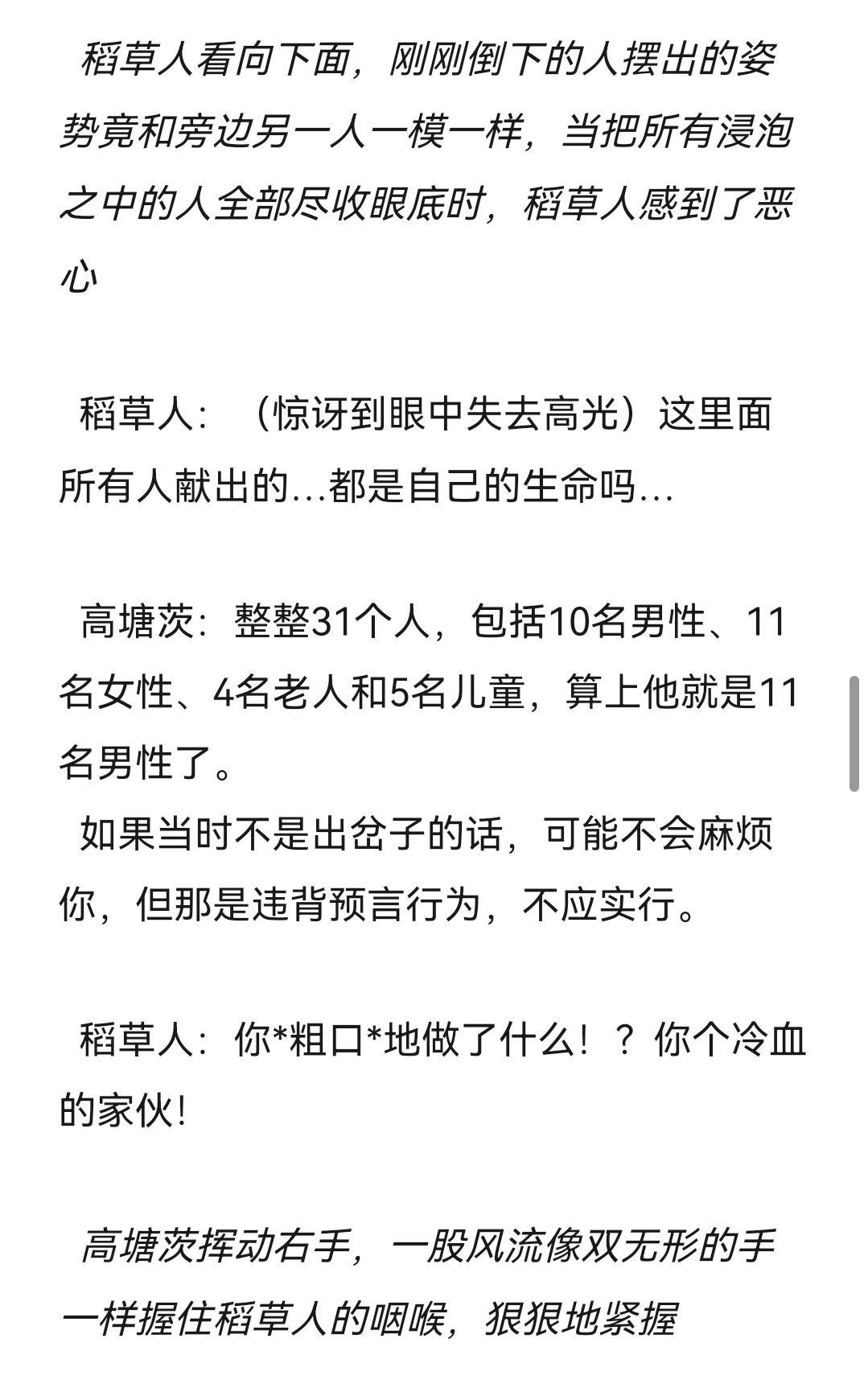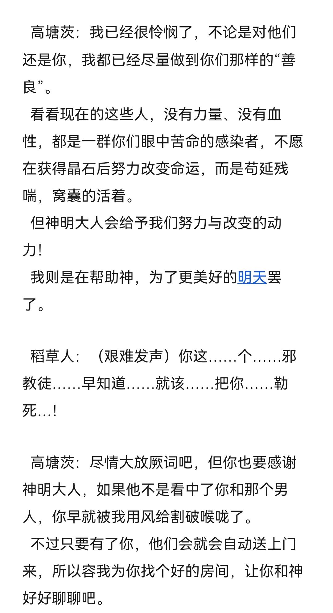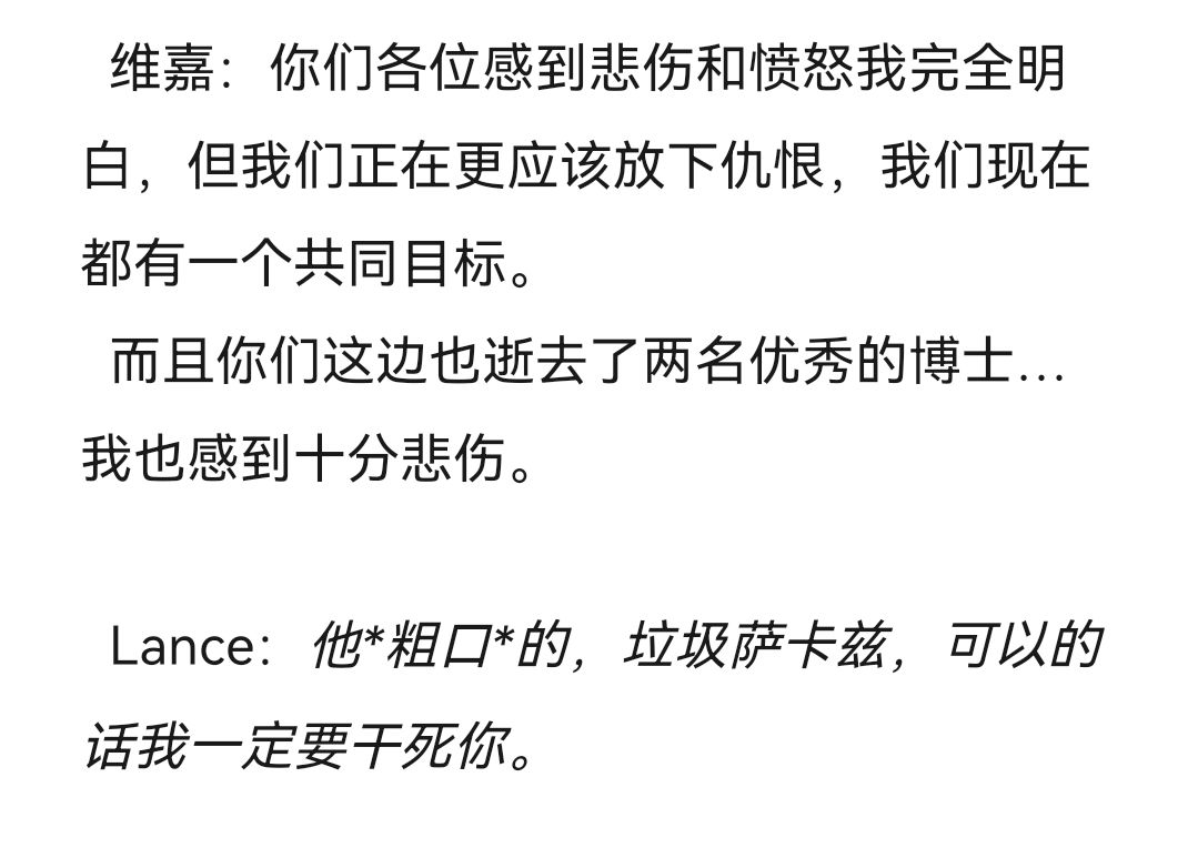 又是新篇,这篇更完后我要休息一下放慢制作速度,希望之后构建后面的剧情走向和那些角色死去,并且想想刀片何时发比较好,所以下周休刊!(bu shi)